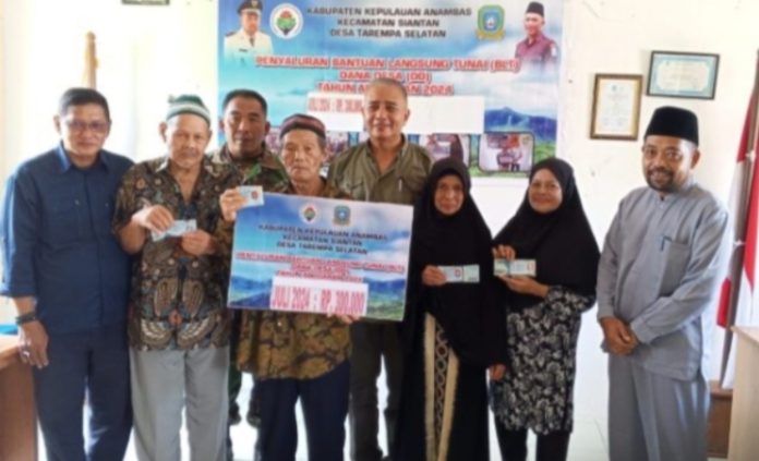 Anambas, SinarPerbatasan.com – Pemerintah Desa Tarempa Selatan menyalurkan Bantuan Langsung Tunai Dana Desa (BLT DD) periode bulan Juli tahun 2024, di aula pertemuan Kantor Desa Tarempa Selatan, Kabupaten Kepulauan Anambas, Jumat (5/7/2024).
