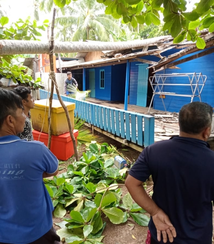Pasalnya, sebuah rumah yang terbuat dari kayu itu, mengalami musibah tertimpa pohon kelapa, akibat angin kencang yang melanda wilayah tersebut, pada Senin (11/07/2022) pagi.