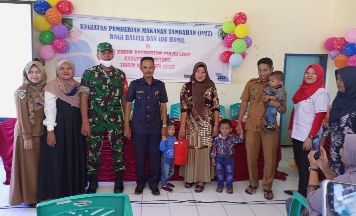 Natuna, SinarPerbatasan.com – Babinsa Desa Kadur, Koptu P. Pasaribu, personil Koramil 08/Pulau Laut, Kodim 0318/Natuna, menghadiri dan monitoring pelaksanaan kegiatan PMK (Pemberian makanan tambahan bagi ibu hamil dan anak balita), yang diselenggarakan oleh Dinas Kesehatan Kabupaten Natuna melalui Puskesmas Pulau Laut, di Kecamatan Pulau Laut. Selasa (28/06/2022) siang.