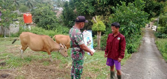Serda Bambang mengigatkan agar pemilik sapi segera melaporkan ke dinas peternakan apabila ada sapi peliharaanya yang terkena Penyakit PMK, untuk mencegah penularan ke sapi yang lainnya. (Zk)
