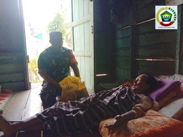 Babinsa Koramil 05/Midai, Sertu Herma Indra, saat menjenguk warganya yang sedang sakit, Rabu (27/03/2024) siang.