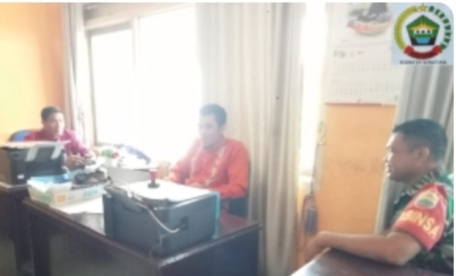 Babinsa Koramil 05/Midai, Kopda Alimin Pagan, saat melaksanakan komsos dengan staf Kantor Desa Sebelat, Jum’at (16/08/2024) siang.