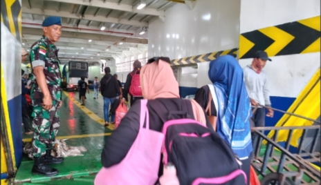 Selain melakukan pengamanan, Babintera juga membantu beberapa penumpang lanjut usia saat turun dari kapal agar dapat berjalan dengan aman menuju area pelabuhan.