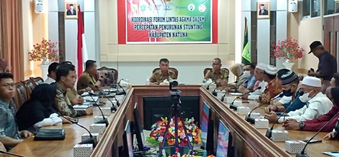 Natuna, SinarPerbatasan.com – Bupati Natuna Wan Siswandi membuka secara resmi Rapat Koordinasi Forum Lintas Agama dalam Percepatan Stunting Kabupaten Natuna. Rapat di taja BP3D Natuna itu berlangsung di ruang rapat utama Kantor Bupati Natuna, Jalan Batu Sisir, Bukit Arai, Ranai, Kecamatan Bunguran Timur, pada Senin (05/12/2022) pagi.