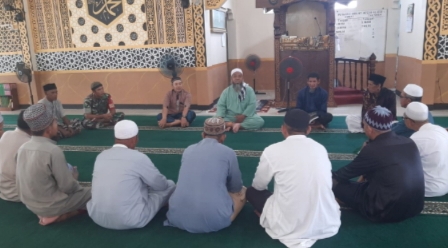 Babinsa Sertu Sedarta Sembiring, saat melaksanakan komsos dengan para ulama di Masjid Al-Ihyak Desa Air Payang, Senin (16/12/2024) siang.