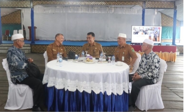 Tampak Bupati Natuna, Wan Siswandi dan Wabup Natuna, Rodhial Huda, saat melakukan temu ramah dengan sejumlah tokoh penting di Natuna, Senin (15/01/2024) pagi.