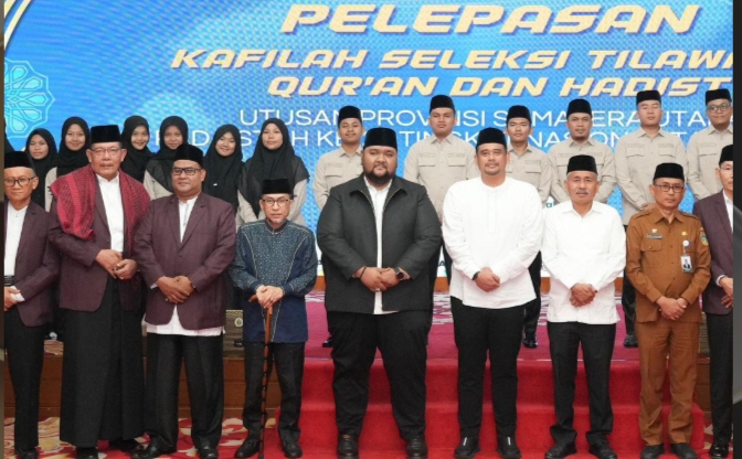 Medan, SinarPerbatasan.com – Gubernur Sumatera Utara, Bobby Nasution, secara resmi melepas kafilah Provinsi Sumatera Utara yang akan berlaga pada Seleksi Tilawatil Qur’an dan Hadis (STQH) Nasional Tahun 2025 di Kendari, Sulawesi Tenggara.