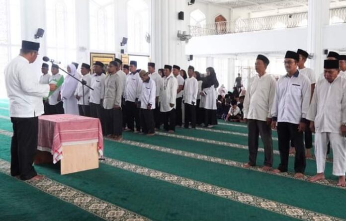 Bupati Kepulauan Anambas, H. Abdul Haris, S.H.,M.H, saat melantik pengurus PC DMI Kecamatan Siantan dan Siantan Selatan, Sabtu (02/12/2023).