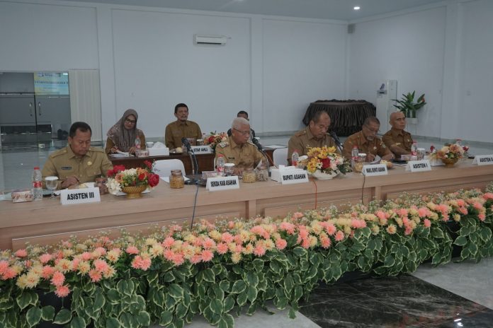 Asahan, SinarPerbatasan.com – Bupati Asahan H. Surya membuka Rapat Koordinasi Pemerintahan (Rakorpem) Bulan Juni Tahun 2024 di Aula Melati Kantor Bupati Asahan, Senin (10/06/2024). Turut hadir Wakil Bupati Asahan, Sekretaris Daerah Kabupaten Asahan, OPD, Camat se-Kabupaten Asahan dan Kepala Puskesmas.