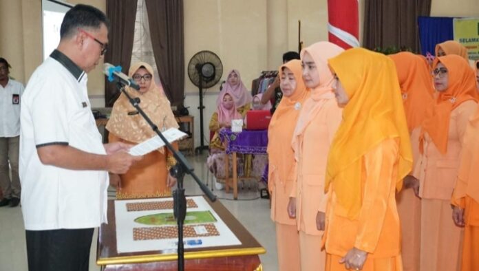 Bupati Natuna, Wan Siswandi, saat melantik para Pengurus GOW Kabupaten Natuna Masa Bhakti 2022-2026, di Gedung Sri Serindit, Kelurahan Batu Hitam, Kecamatan Bunguran Timur, pada Rabu (21/12/2022) pagi. (foto : Zubad)