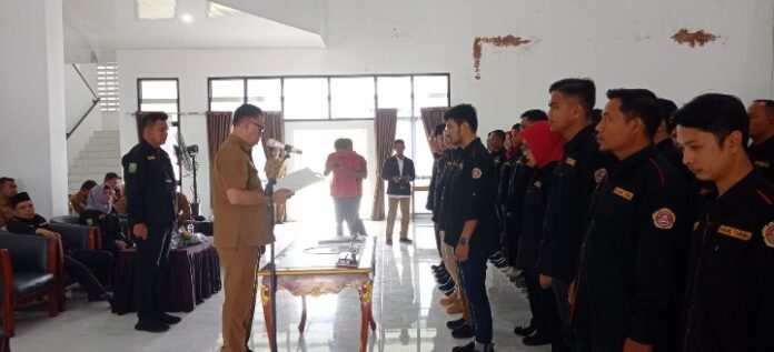 Bupati Natuna, Wan Siswandi, saat membacakan SK pelantikan Karang Taruna Kabupaten Natuna, Senin (26/12/2022) di Gedung Wanita. (foto : Zubad)