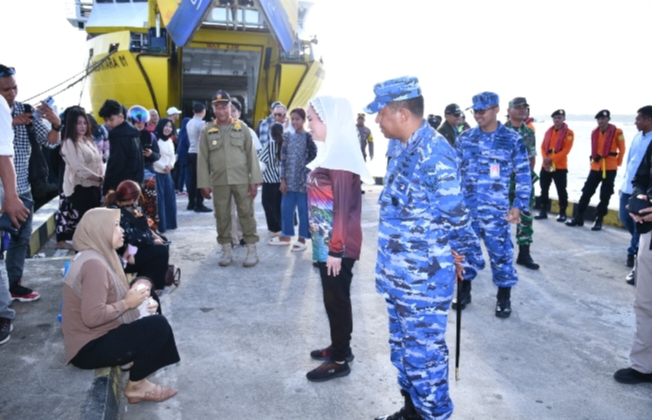 Natuna, SinarPerbatasan.com – Bupati Natuna Cen Sui Lan didampingi Komandan Lanud Raden Sadjad (Danlanud RSA) Marsekal Pertama TNI Onesmus Gede Rai Aryadi, S.E., M.M., M.Han., memantau arus mudik Idul Fitri 1447 Hijriah di Pelabuhan Penyeberangan Penagi, Kab.Natuna, Provinsi Kepri, Rabu (18/3/2026).