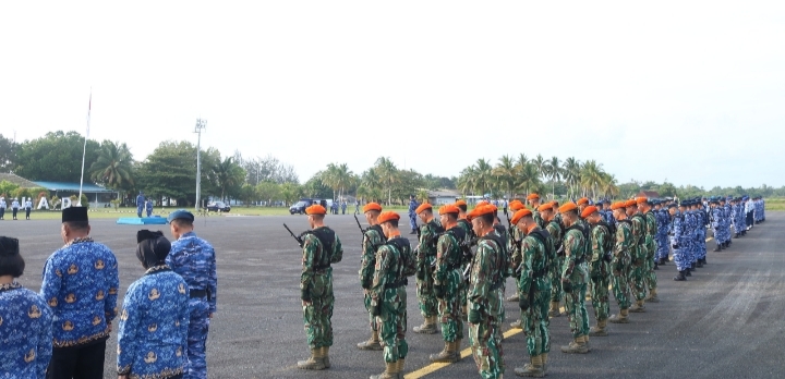 Suasana upacara bendera 17-an di Apron Base Ops Lanud RSA, Kabupaten Natuna, Provinsi Kepulauan Riau, Rabu (17/07/2024) pagi.