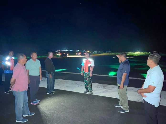 Komandan Lanud RSA, Marsekal Pertama TNI Onesmus Gede Rai Aryadi, S.E., M.M., M.Han., turun langsung ke lapangan untuk memastikan kesiapan personel dan fasilitas pendukung sebelum pesawat mendarat di malam hari.