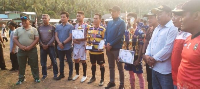 Anambas, SinarPerbatasan.com – Pjs. Danramil 02/Tarempa Kodim 0318/Natuna, Sersan Mayor (Serma) Adi Iswanto, menghadiri acara penutupan Turnamen Sepak Bola dalam rangka memperingati Hari Ulang Tahun (HUT) Karang Taruna Cahaya Mekar ke-7 tahun 2022, di Desa Pesisir Timur, Kecamatan Siantan, Kabupaten Kepulauan Anambas (KKA), pada Sabtu (16/07/2022) sore.