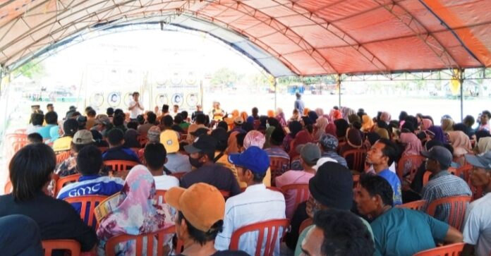 Ratusan masyarakat Kecamatan Mawasangka, Kabupaten Buton Tengah, Provinsi Sulawesi Tenggara, saat mendengarkan pidato dari Anggota Komisi V DPR RI, Ridwan Bae, Senin (08/01/2024).