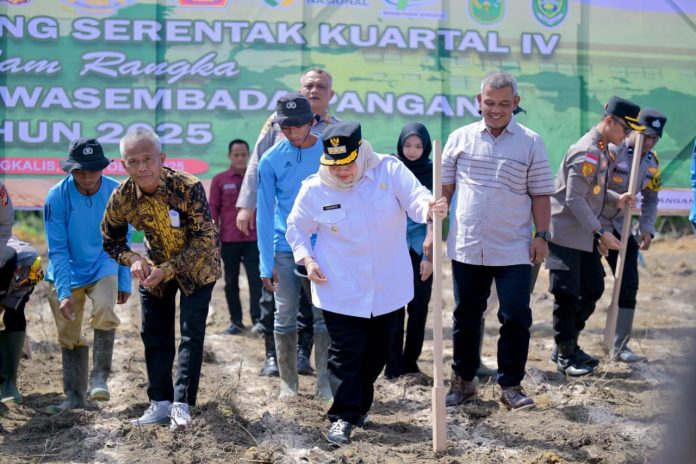 Bupati Kasmarni Saat Ikut Penanaman Jagung Serentak Kuartal IV Tahun 2025.