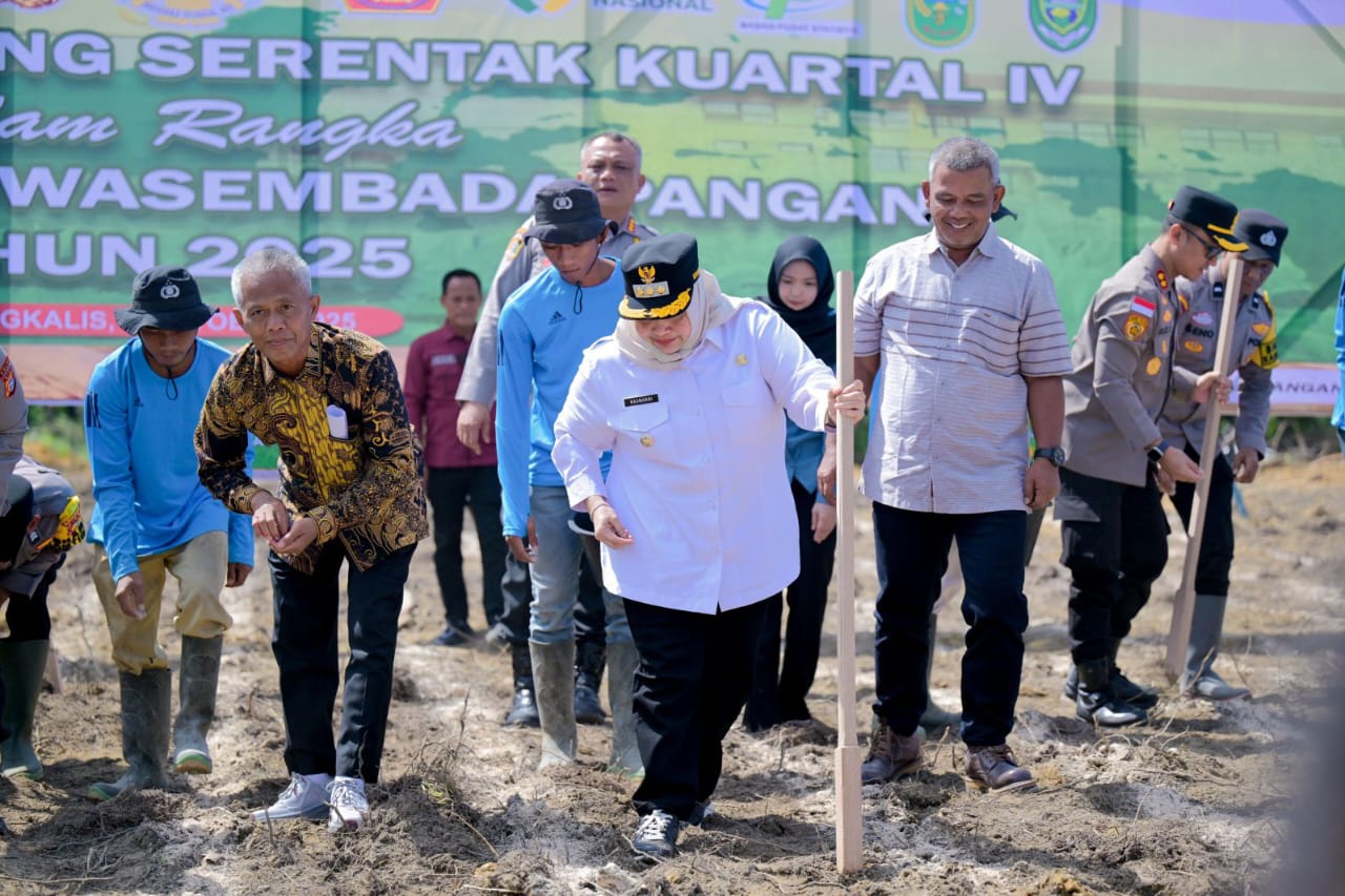 Bupati Bengkalis Kasmarni menyampaikan bahwa Penanaman Jagung serentak ini menjadi langkah nyata Pemerintah Kabupaten Bengkalis dalam memperkuat sektor pertanian dan mendukung kemandirian pangan.