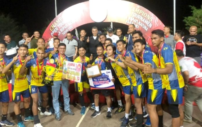 Dengan dihadiri oleh hampir 5000 penonton memadati area pertandingan, Tim Selection menjadi juara dalam Open Turnament Piala Bupati tahun 2022 menyusul Tim Pertamina Energi Natuna pada posisi ke 2. Sedangakan untuk posisi ke tiga ditempati oleh Tim Gardapati dan Tim Putra Bunguran menempati urutan ke empat.