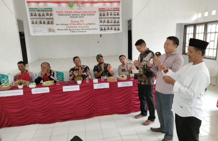 “Dalam kegiatan tersebut, juga dilakukan pencabutan undi nomor urut para kandidat calon Kades Kadur,” terang Koptu Pasaribu.