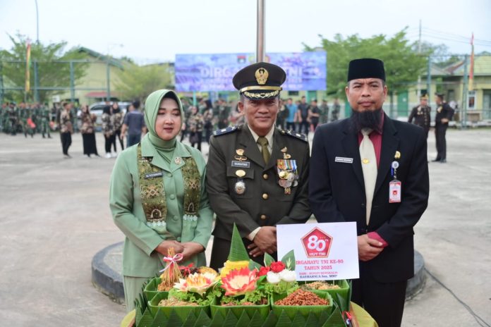 Bengkalis, SinarPerbatasan.com – Bupati Bengkalis diwakili Asisten Pemerintahan dan Kesejahteraan Rakyat Andris Wasono menghadiri upacara peringatan Hari Ulang Tahun (HUT) Tentara Nasional Indonesia (TNI) Ke-80 yang digelar di Lapangan Upacara Kodim 0303/Bengkalis, Sabtu, (5/10/2025).
