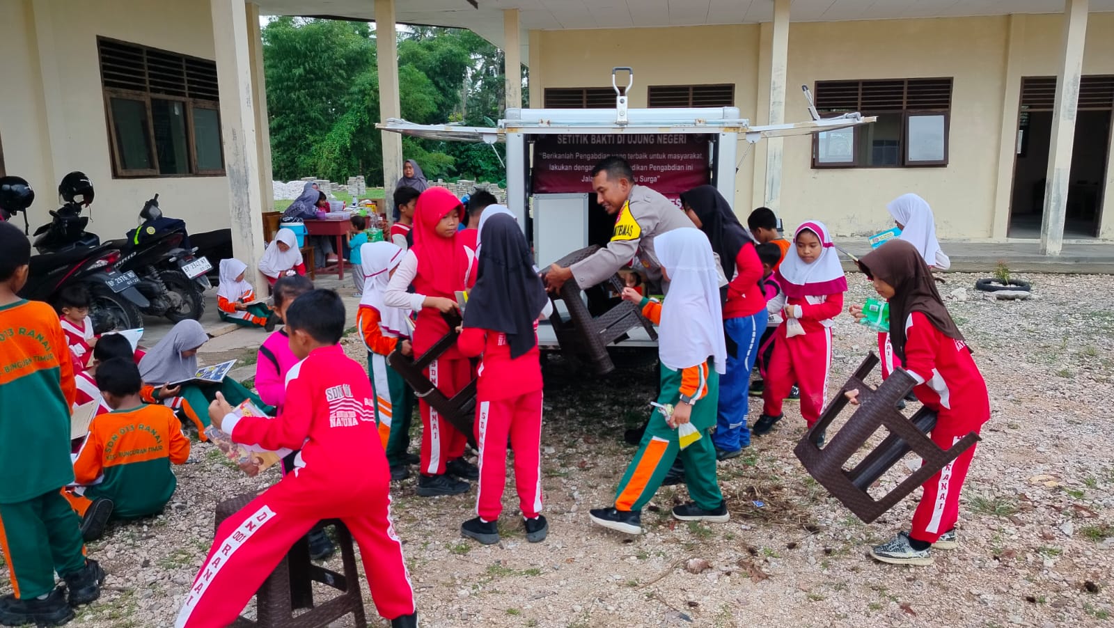 Program perpustakaan keliling yang digagas Ipda Mudiyanto di sambut antusias siswa-siswi dan guru di setiap sekolah di Natuna.