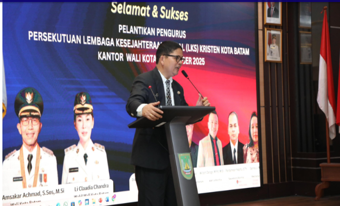 Batam, SinarPerbatasan.com – Wali Kota Batam, Amsakar Achmad, diwakili Kepala Dinas Komunikasi dan Informatika (Kominfo) Batam, Rudi Panjaitan, mengukuhkan pengurus Persekutuan Lembaga Kesejahteraan Sosial (LKS) Kristen Kota Batam periode 2025–2029 di Kantor Wali Kota Batam, Rabu (1/10/2025).