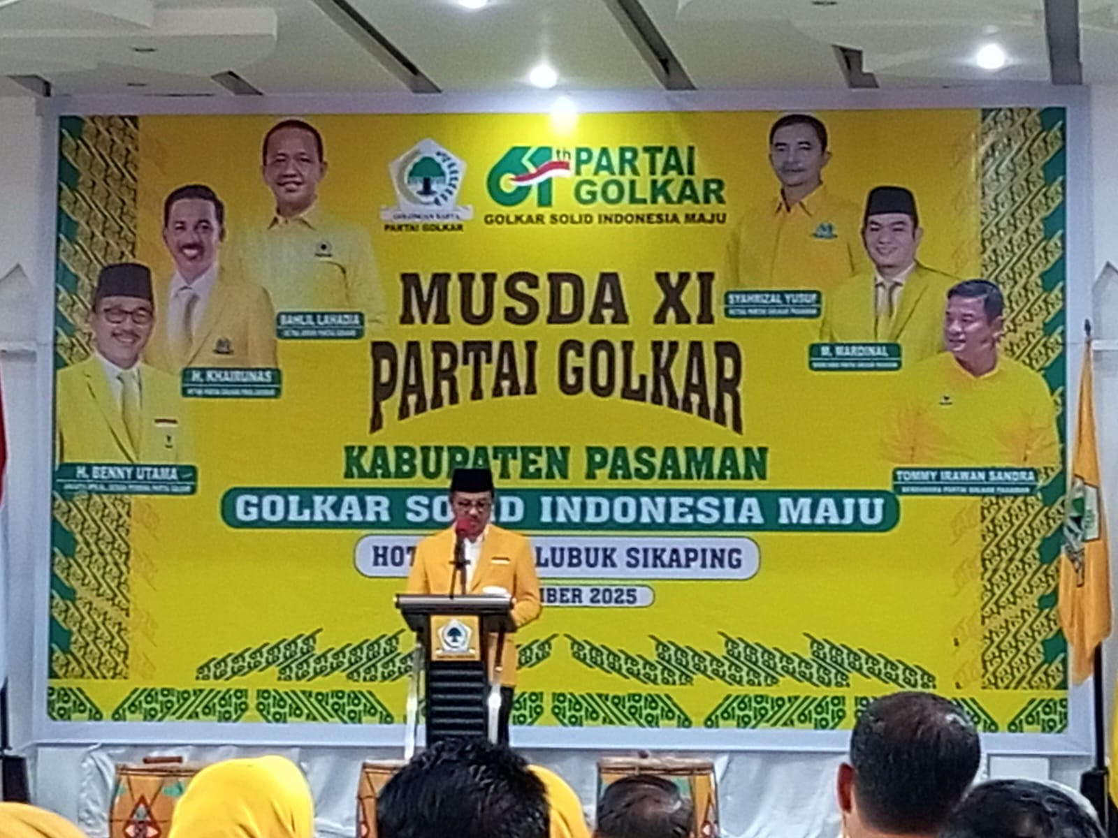 Khairunas, yang juga menjabat sebagai Bupati Solok Selatan, menekankan bahwa ketua terpilih nantinya memikul tanggung jawab besar untuk mengembalikan kejayaan Partai Golkar di Pasaman.