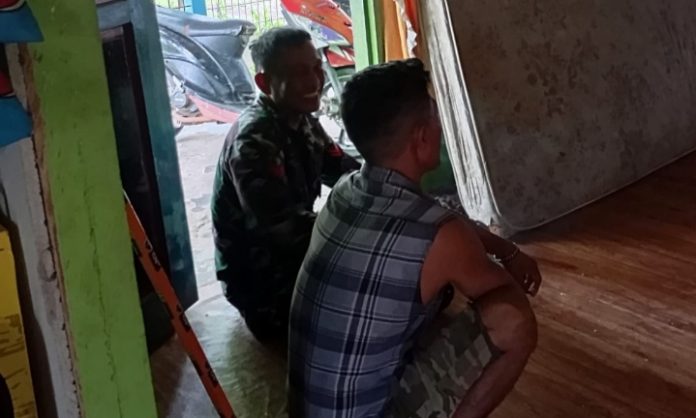 Babinsa Koramil 08/Pulau Laut Koptu Sittong Purba, saat bersilaturahmi dengan Heri, warga Desa Kadur Kecamatan Pulau Kaut, Minggu (25/08/2024) siang.
