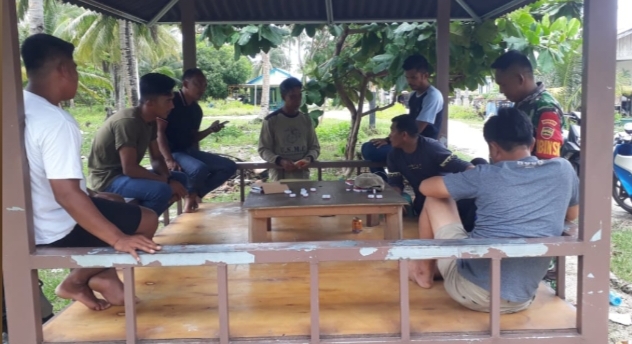 Babinsa Koramil 08/Pulau Laut, Koptu Sittong Purba, saat melaksanakan komsos dengan sejumlah warga Desa Kadur, Sabtu (01/02/2025) siang.