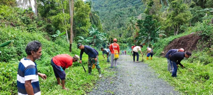 Natuna, SinarPerbatasan.com – Antusiasme dan dukungan aparat pemerintahan desa dan seluruh warga masyarakat Desa Tiangau, dalam menyambut diselenggarakannya Tentara Manunggal Membangun Desa (TMMD) Ke-115 Kodim 0318/Natuna di Desa Tiangau, kembali ditunjukkan melalui kegiatan gotong-royong membersihkan fasilitas umum dan jalan raya, yang akan digunakan dalam pelaksanaan TMMD Ke-115 yang akan datang.