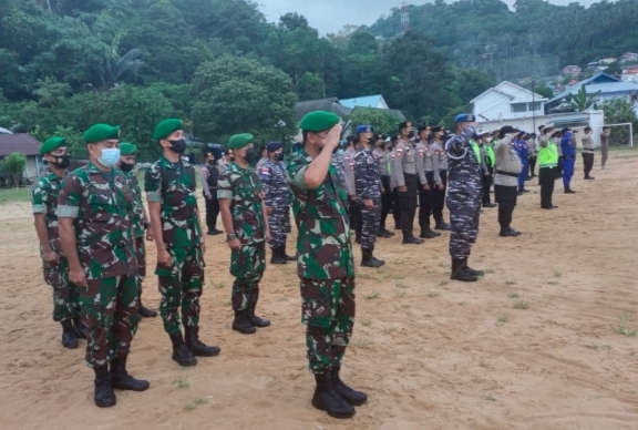 Personel gabungan TNI, POLRI dan Satpol PP Anambas, saat mengikuti apel menjelang malam takbir Idul Fitri 1443 H.