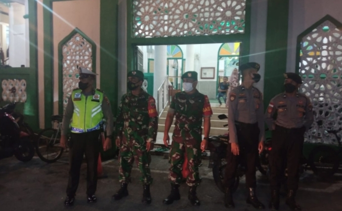 Petugas gabungan dari Koramil 02/Tarempa dan Polres Anambas, saat melakukan pengamanan dan ketertiban dimalam takbiran.