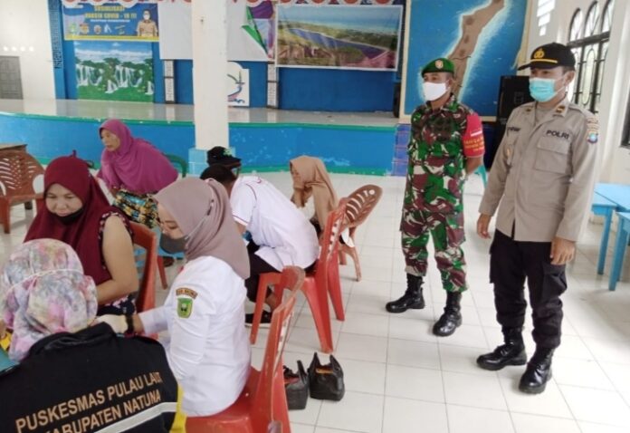 Natuna, SinarPerbatasan.com – Personel TNI-AD dari Koramil 08/Pulau Laut, Kodim 0318/Natuna, Serda S. Sembiring, turut melaksanakan pengamanan dan pengawasan, dalam pelaksanaan vaksinasi bagi siswa-siswi SDN 001 Air Payang dan masyarakat umum.