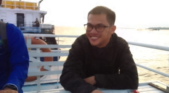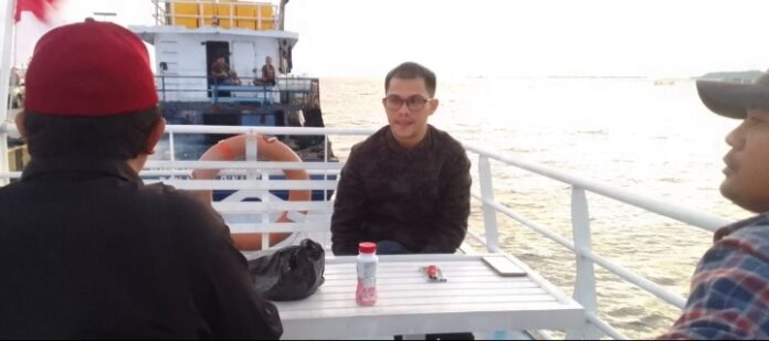 Anggota DPRD Natuna, Wan Ricci Saputra, saat ditemui di atas kapal ferry Indra Perkasa 159 milik Pemda Natuna, yang membawanya menuju ke Kecamatan Pulau Laut.
