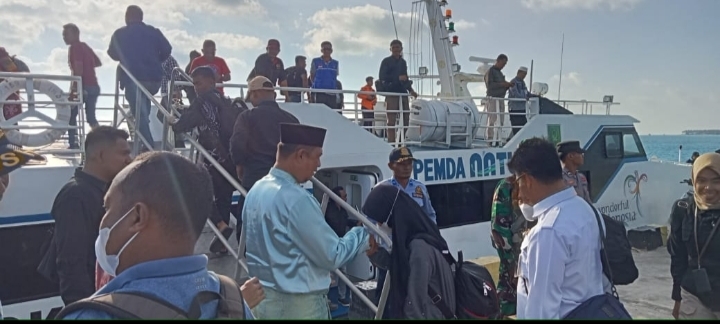 Rombongan saat tiba di Pelabuhan Perintis Pulau Laut, di Desa Air Payang, dan langsung disambut hangat oleh ratusan masyarakat Pulau Laut.