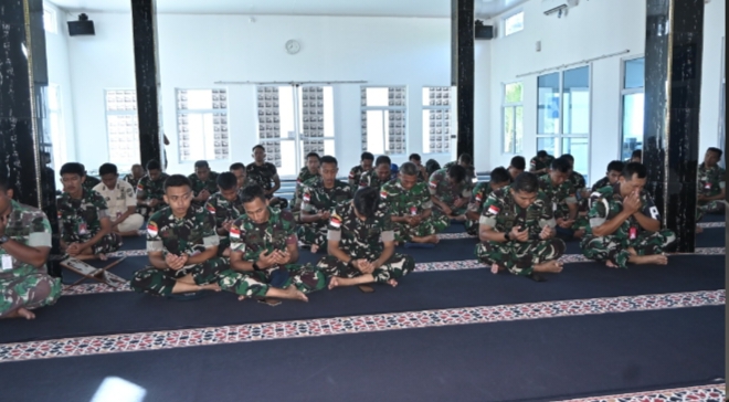 Kegiatan ini menjadi bagian pembinaan rohani guna menjaga keseimbangan mental dan fisik prajurit dalam mendukung tugas operasional. (Zubad)