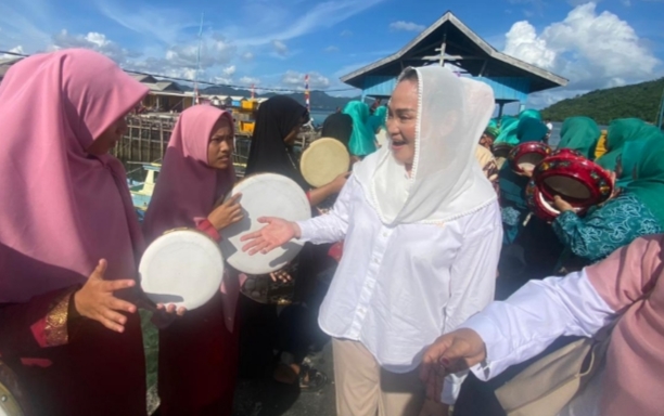 Anggota Komisi V DPR RI sekaligus Calon Bupati Natuna, Cen Sui Lan alias Aisyah (jilbab putih), saar menyapa masyarakat Kecamatan Pulau Tiga.