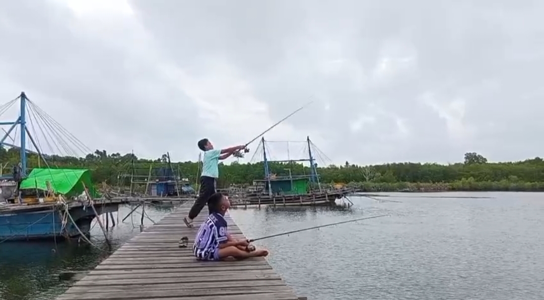 “Kami mancing ditemani Papa dan Mama. Kebetulan orang tua juga sedang libur kerja, jadi kami diajak mancing bersama,” kata Dzaki.