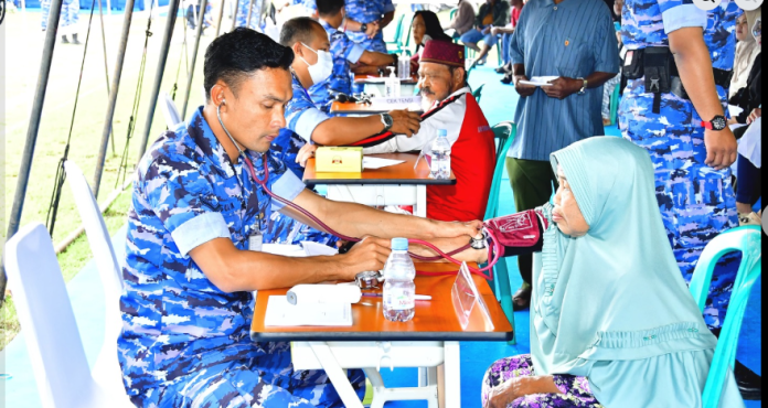 Warga Desa Air Lengit tampak sangat antusias mengikuti kegiatan pengobatan dan pemeriksaan kesehatan massal gratis yang digelar TNI AU melalui Lanud Raden Sadjad Natuna, Selasa (07/04/2026).