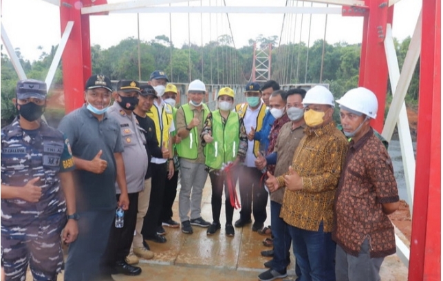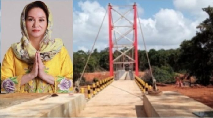 Jembatan gantung yang terbuat dari baja senilai Rp 6 milyar (bangunan jembatan, penimbunan jalan dan pondasi) itu, berasal dari Aspirasi Cen Sui Lan, yang dibangun oleh Kementerian PUPR sejak tahun 2021.