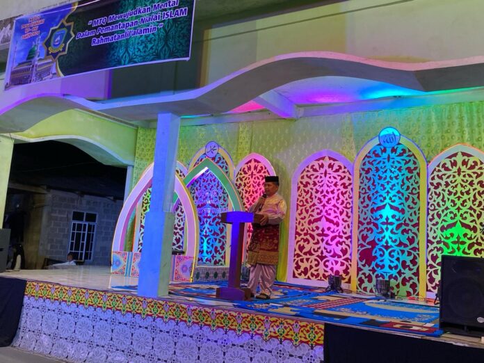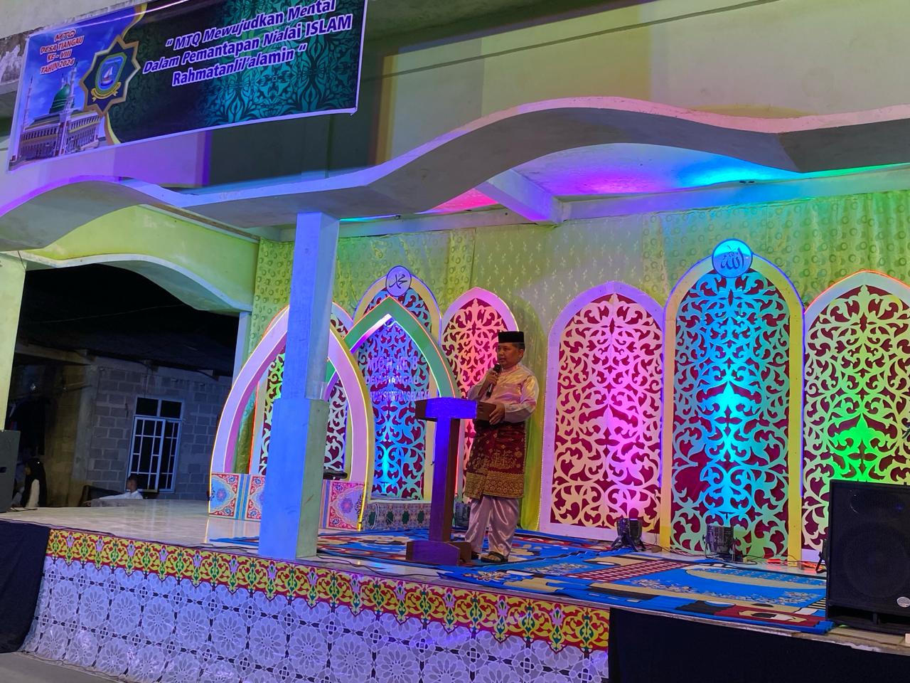 Wabup Kepulauan Anambas, Wan Zuhendra, saat menyampaikan kata sambutan seraya membuka MTQ ke-VIII Desa Tiangau, Senin (05/02/2024) malam. (Foto : Thoni)