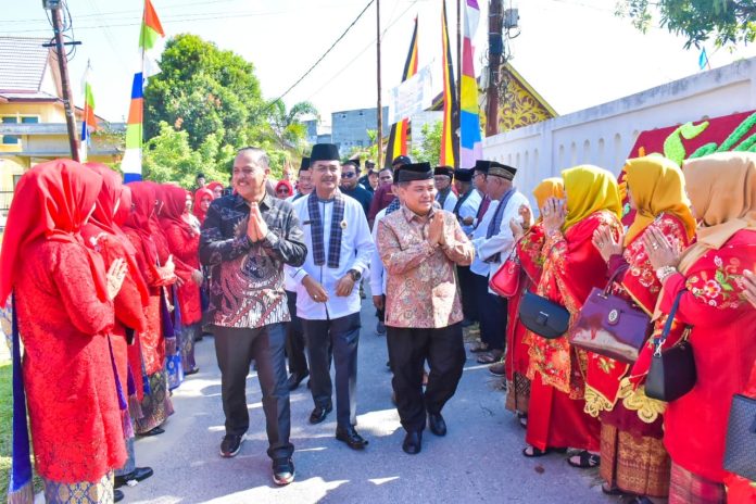 Dalam kesempatan itu, turut dihadiri Bupati Agam Ir. Benni Warlis MM Dt Tan Batuah dan bersama Kadisparbudpora Edi Sakura disambut meriah dengan arak-arakan dan tambua tansa menuju ke lokasi kegiatan di Jalan Harapan Raya, Kelurahan Air Jamban, Kecamatan Mandau.