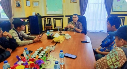 Sejumlah awak media saat menemui Bupati Natuna, Wan Siswandi, diruang kerjanya belum lama ini.