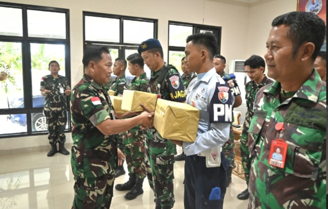 Penyerahan bingkisan dilakukan bersama para Kepala Dinas dan Dansat, menambah kesan kebersamaan yang tercipta alami di antara seluruh personel yang hadir dalam momen tersebut.