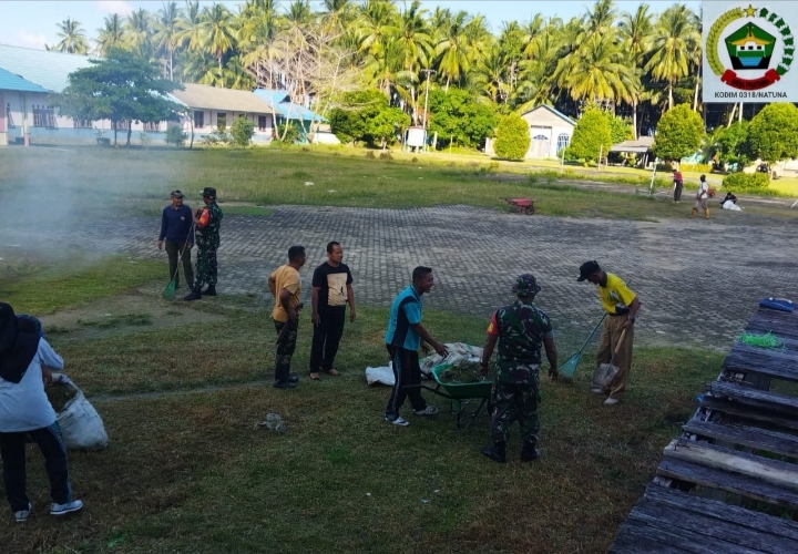 Natuna, SinarPerbatasan.com – Sejumlah personil Koramil 05/Midai Kodim 0318/Natuna, yang dipimpin langsung oleh Danramil 05/Midai, Kapten Inf. Kristian Napitupulu, mengikuti aksi gotong-royong (goro) di lapangan gedung astaka Kecamatan Midai, Kabupaten Natuna, pada Kamis (07/07/2022) pagi.