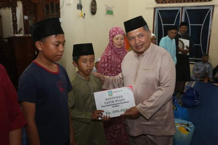 Selain itu pada kesempatan ini pemerintah Daerah bersama Pihak Perusahaan SKK Migas, Medco Energy dan Baznas Kabupaten Kepulauan Anambas juga memberikan sejumlah bantuan sembako dan santunan kepada masyarakat yang kurang mampu serta penyerahan Wakaf Al-Qur’an dari Amjad Melenium Malaysia Singapura.