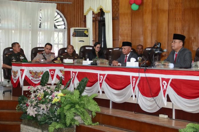 Asahan, SinarPerbatasan.com – Untuk memperingati Hari Jadi ke-78 Kabupaten Asahan Tahun 2024, DPRD Kabupaten Asahan menggelar Rapat Paripurna di Aula Rambate Rata Raya Sekretariat DPRD Kabupaten Asahan yang dipimpin langsung oleh Ketua DPRD Kabupaten Asahan H. Baharuddin Harahap, SH, MH, Jum’at (15/03/2024).