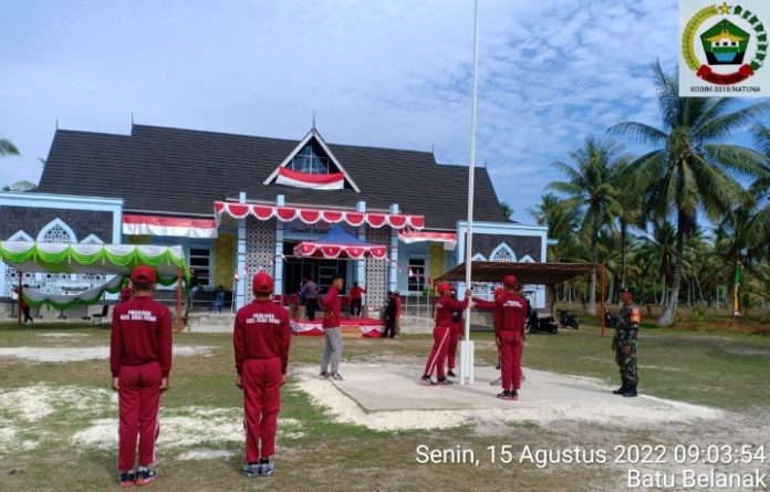 Natuna, SinarPerbatasan.com – Babinsa Desa Batu Belanak, Serda Bonar Ritonga, anggota Koramil 05/Midai Kodim 0318/Natuna, kembali melaksanakan komsos sekaligus melatih para calon Paskibraka di Kecamatan Suak Midai, Kabupaten Natuna, pada Senin (15/08/2022) pagi, di halaman Kantor Camat Suak Midai.
