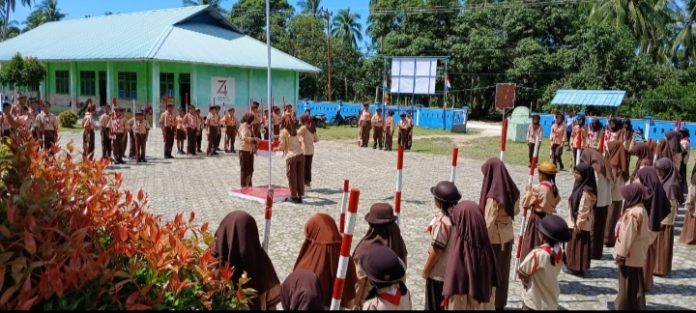 Suasana penutupan perkemahan Pramuka di SDN 002 Desa Tanjung Pala, Kecamatan Pulau Laut, Rabu (14/08/2024) pagi.